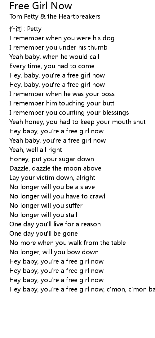 | Hey baby, you' re a free girl now, c' mon, c' mon baby |