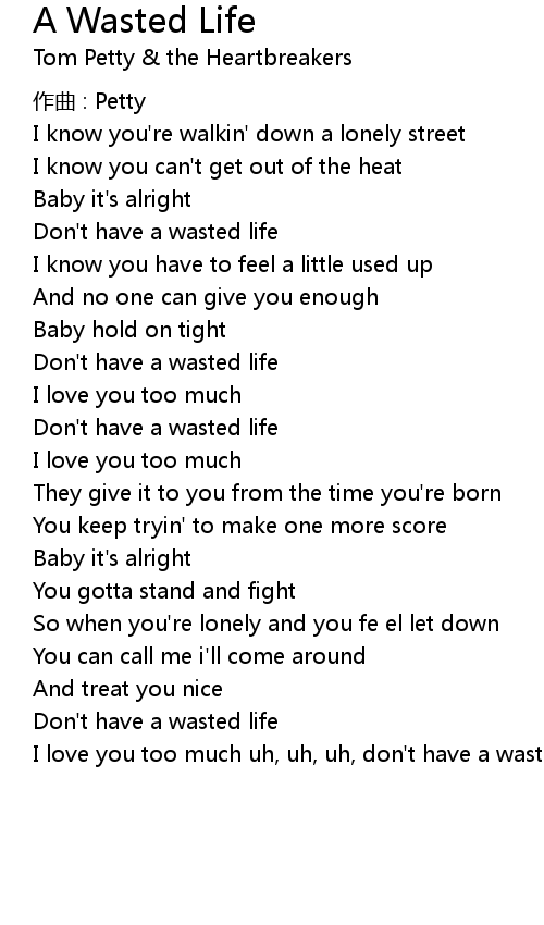 | I love you too much uh, uh, uh, don't have a wasted life |