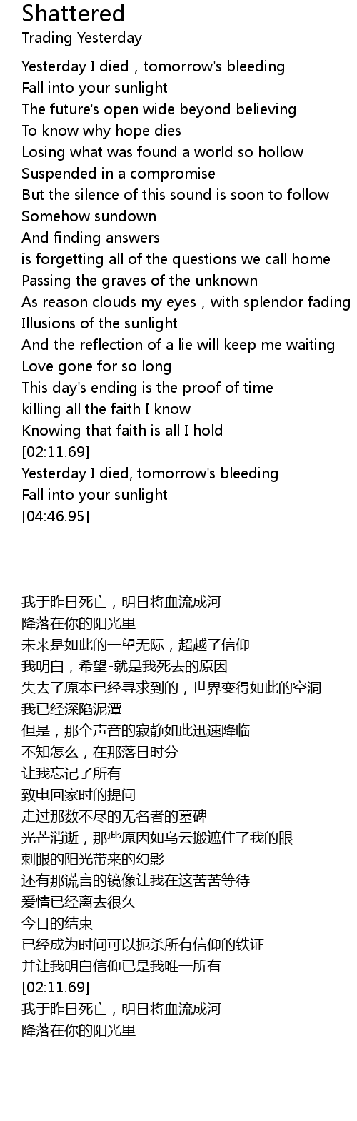| [00:13.080] | Yesterday I died, tomorrow' s bleeding |