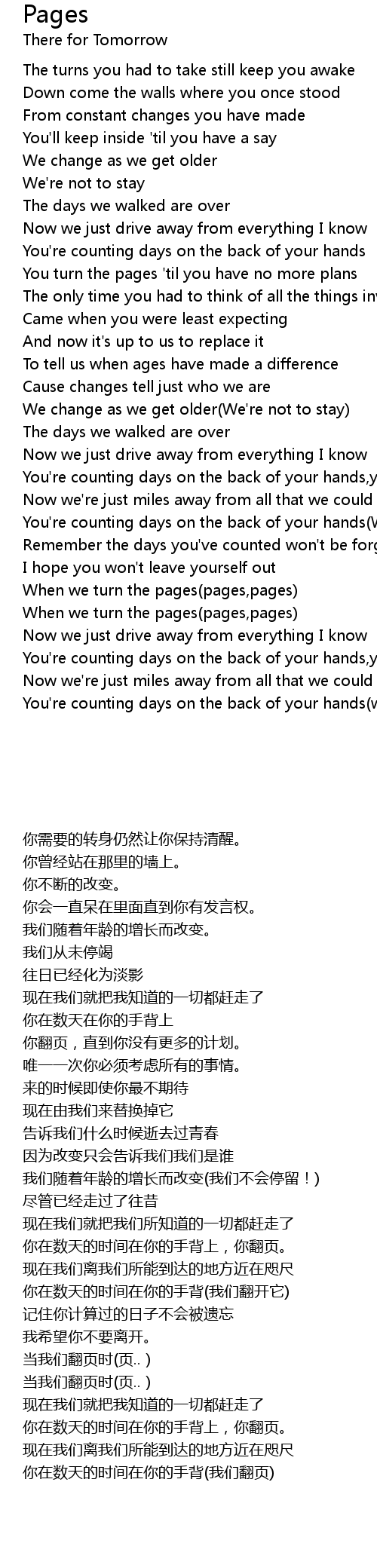 You're counting days on the back of your hands(We turn the pages) |