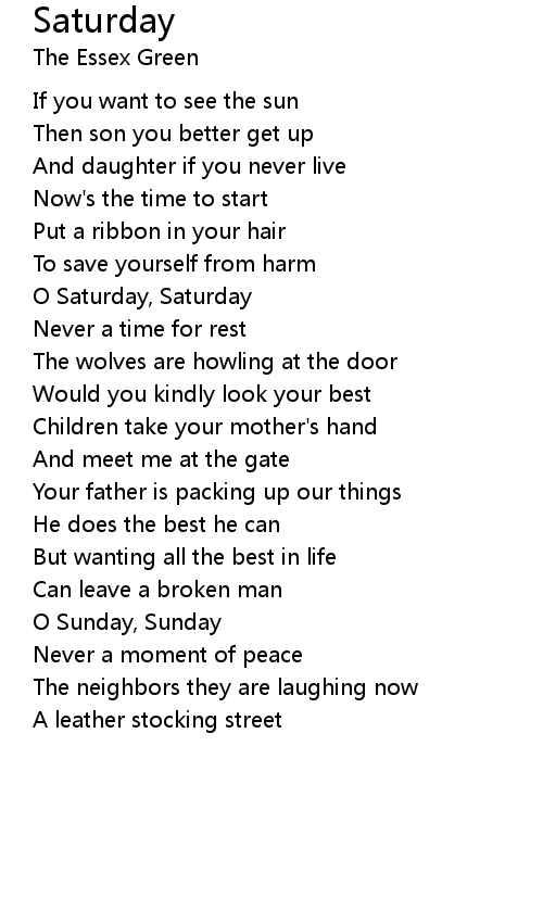 Saturday 歌词