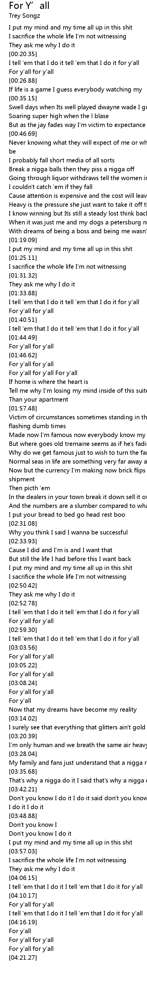 I tell 'em that I do it tell 'em that I do it for y'all |