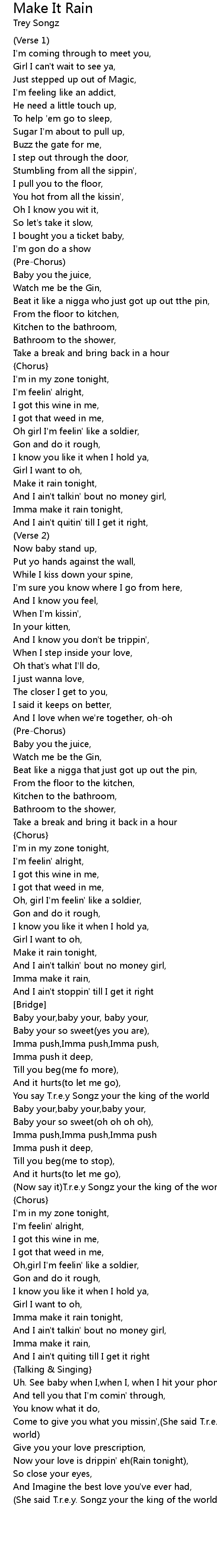You say T.r.e.y Songz your the king of the world |