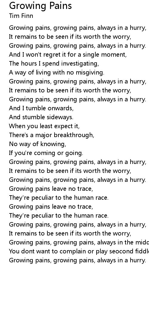 | Growing pains, growing pains, always in a hurry, | |