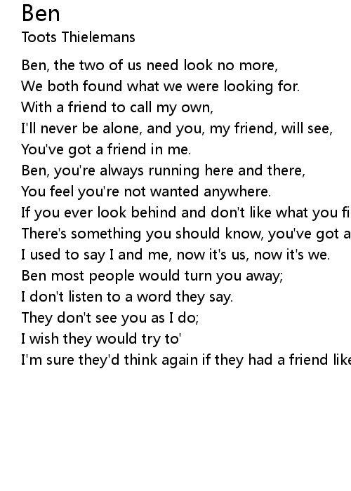I'm sure they'd think again if they had a friend like Ben, like Ben |