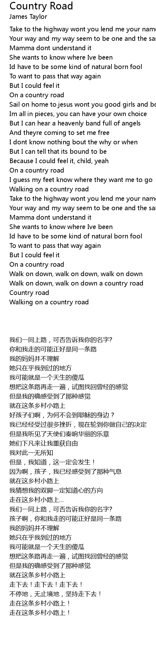 Walk on down, walk on down a country road |