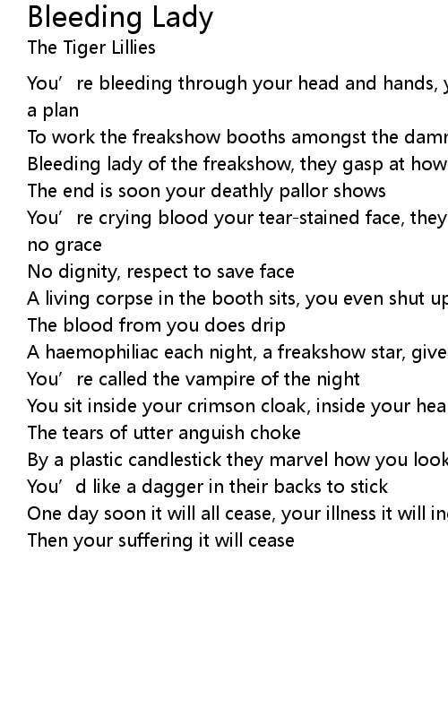 | Bleeding lady of the freakshow, they gasp at how your blood does flow | |