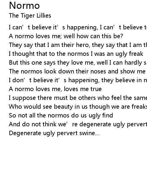 | A normo loves me, loves me true | |