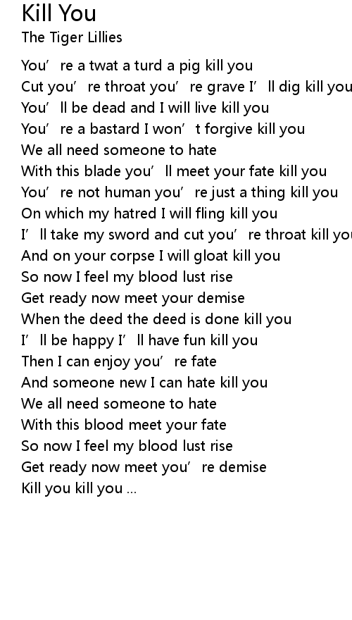 | Kill you kill you ... |