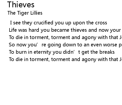 | Life was hard you became thieves and now your lives you’ve lost | |