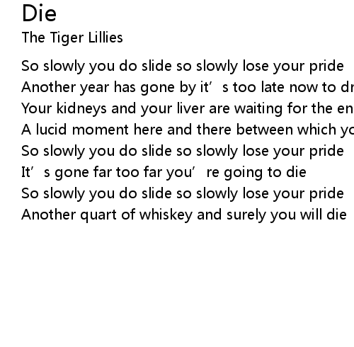 | Another quart of whiskey and surely you will die |