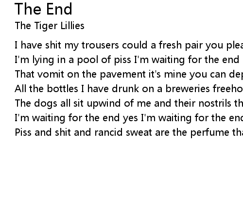 | I'm lying in a pool of piss I'm waiting for the end | |