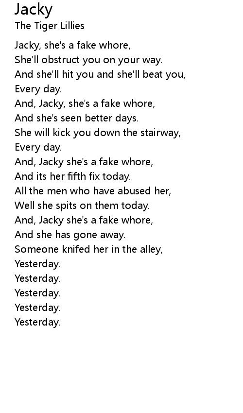 | Jacky, she's a fake whore, | |