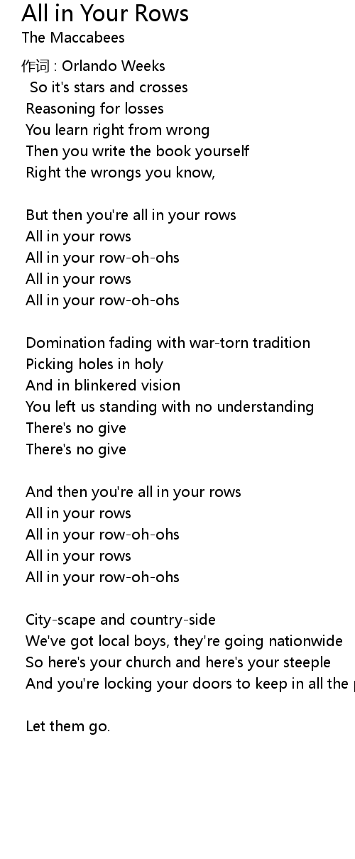 | 歌曲 | All in Your Rows |