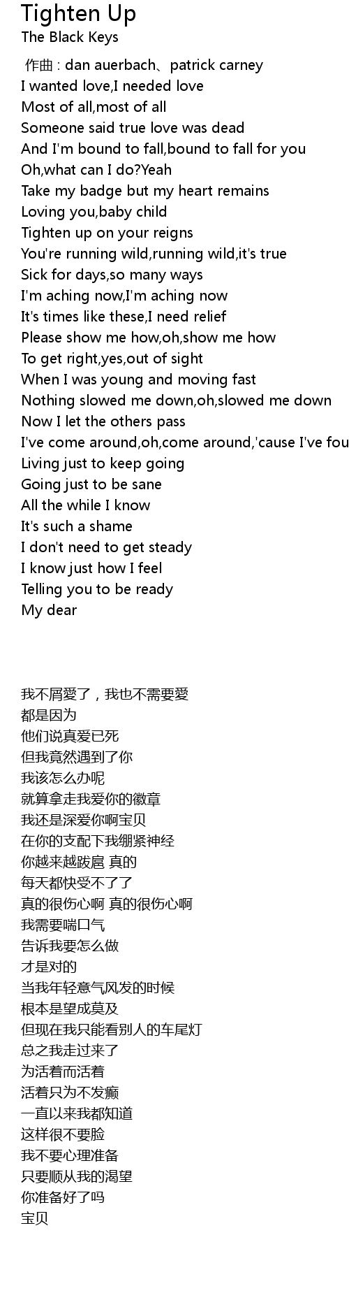 | [00:00.00] | 作曲 : dan auerbach、patrick carney |