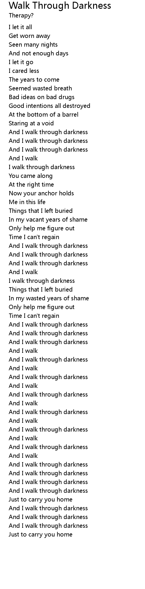 And I walk through darkness |