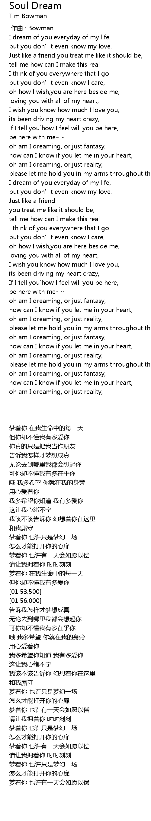 | [01:58.500] | 告诉我怎样才梦想成真 |