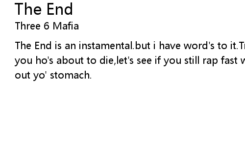 The End is an instamental.but i have word's to it.Triple six is talkin shit but
