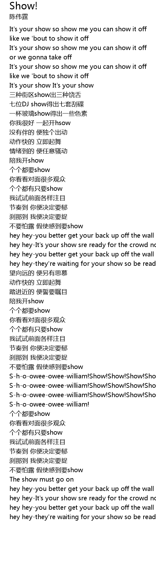 | [02:14.890] | S-h-o-owee-owee-william!Show!Show!Show!Show! |