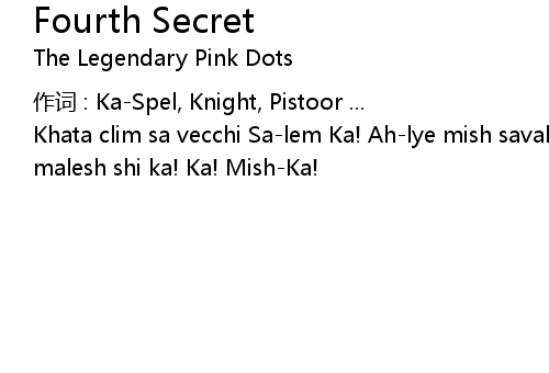 | Khata clim sa vecchi Sa-lem Ka! Ah-lye mish savalti dahrin pecchi sona kor malesh shi ka! Ka! Mish-Ka! |