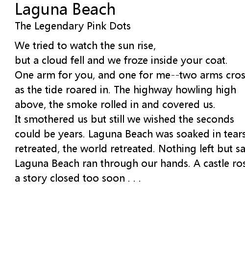 | could be years. Laguna Beach was soaked in tears, the sea | |