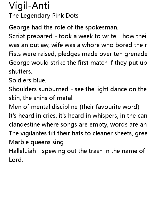It's heard in cries, it's heard in whispers, in the candlelight of ceremonies clandestine where songs are empty, words are anti-this and anti-that. |