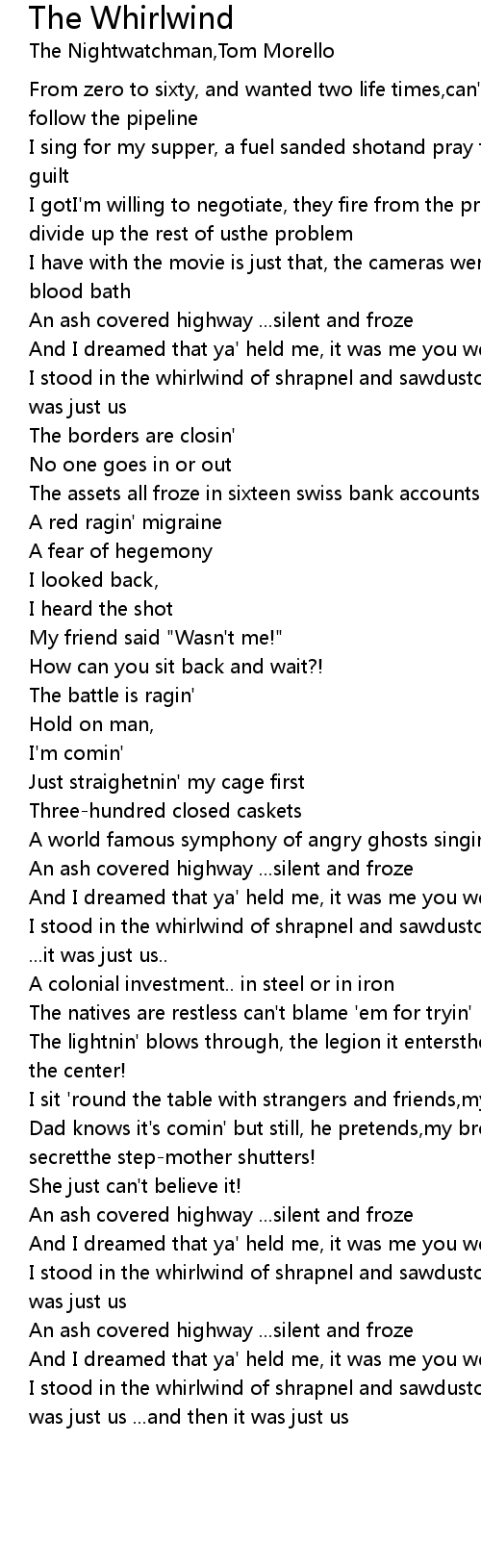 I stood in the whirlwind of shrapnel and sawdustoutside of the moteland then it was just us ...and then it was just us |