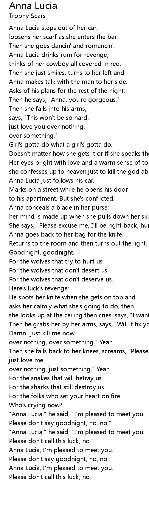"Anna Lucia," he said, "I'm pleased to meet you. |