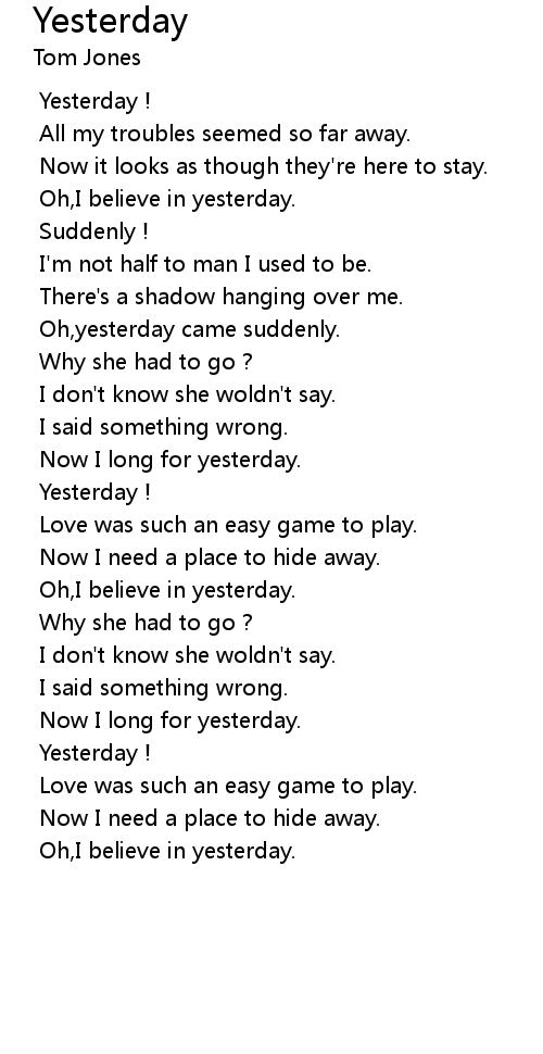 | Oh, I believe in yesterday. |