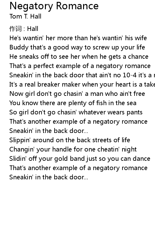 | Sneakin' in the back door that ain' t no 104 it' s a negatory romance | |