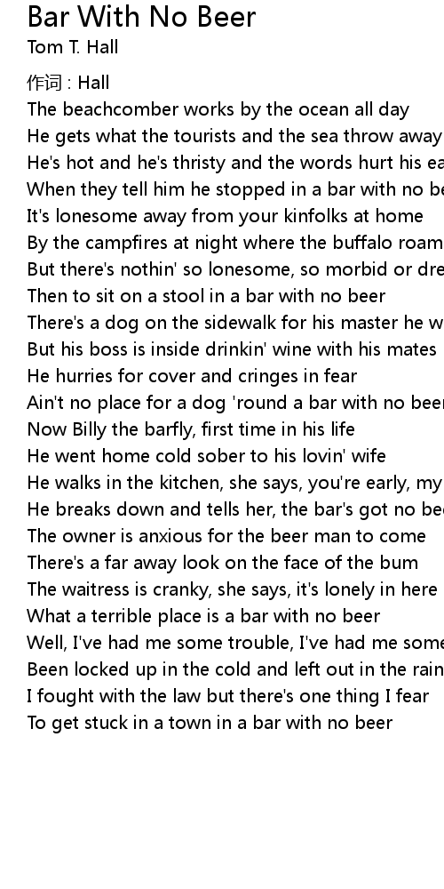 | Ain' t no place for a dog ' round a bar with no beer | |