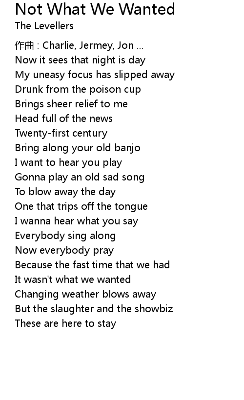 | 歌曲 | Not What We Wanted |