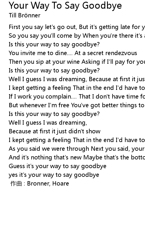 | Guess it' s your way to say goodbye | |