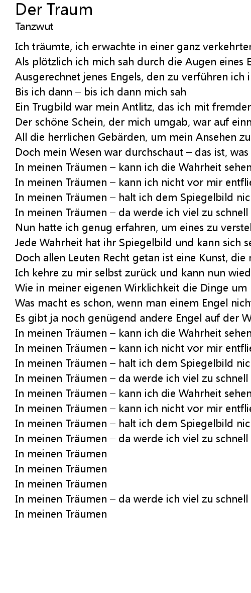 | In meinen Tr umen halt ich dem Spiegelbild nicht Stand | |