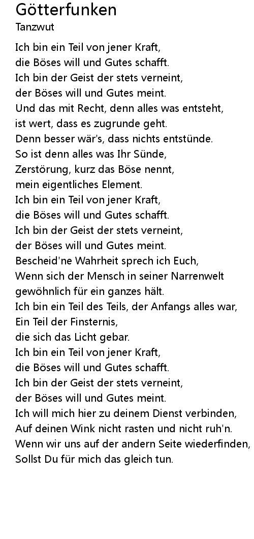 | Denn besser w r' s, dass nichts entstü nde. | |
