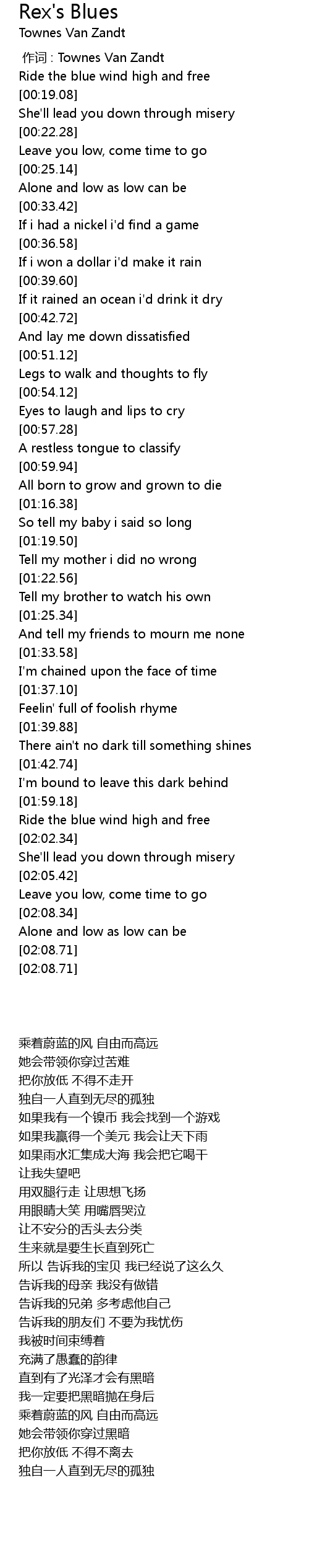 | [00:00.00] | 作词 : Townes Van Zandt |