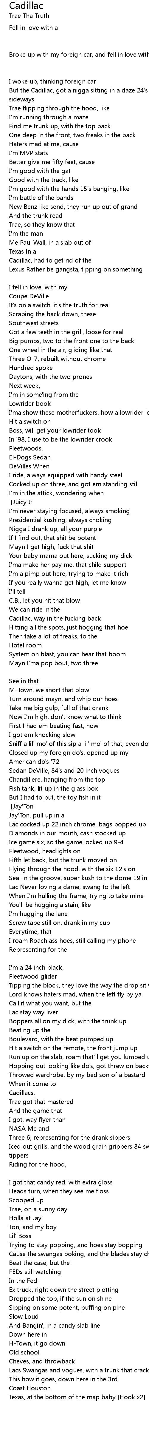 Cadillac tight whippers [Paul Wall:] |
