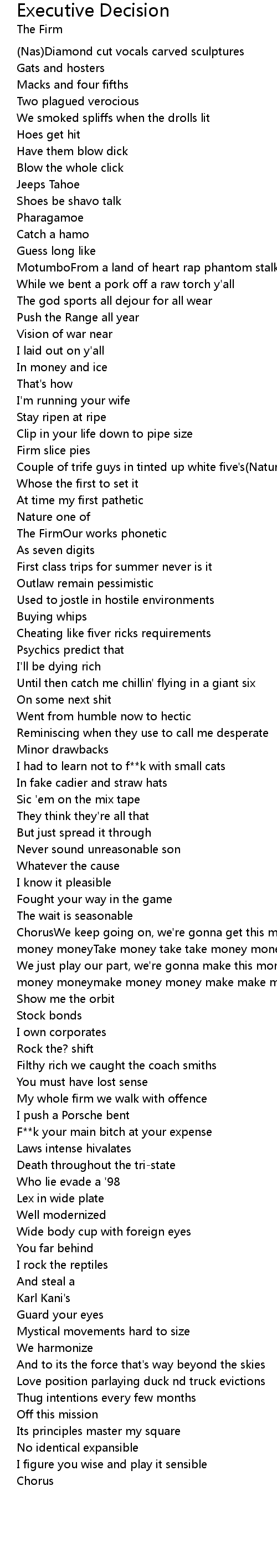 | ChorusWe keep going on, we're gonna get this money(Take money money take take money moneyTake money take take money money) | |