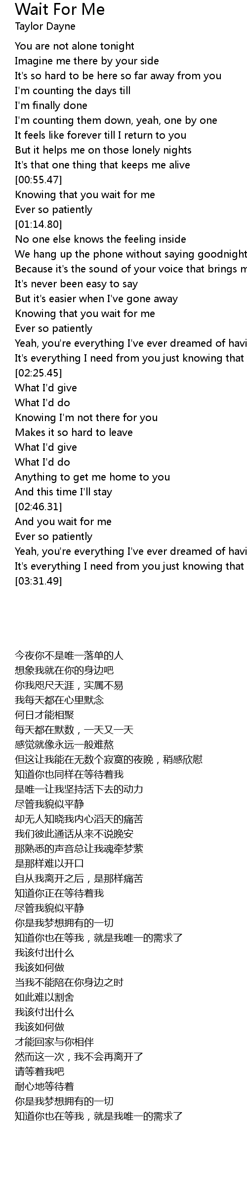 And you wait for me |