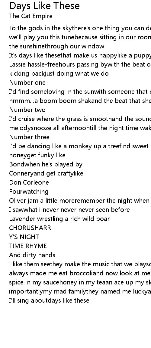 Days Like These 歌词