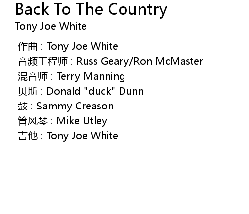| [00:00.000] | zuò qǔ : Tony Joe White |