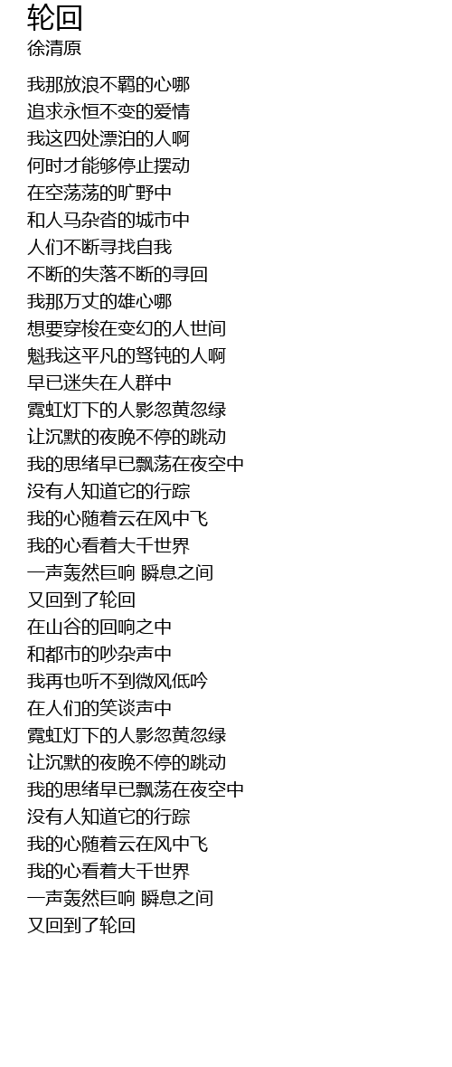 | [01:28.19] | bù duàn de shī luò bù duàn de xún huí |