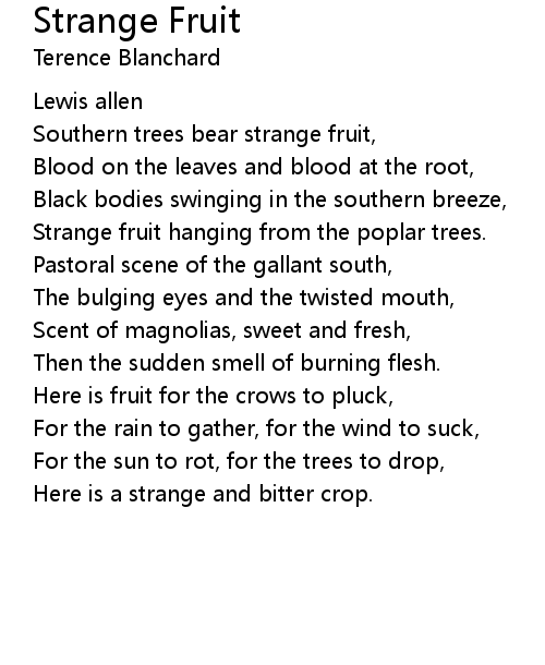 | Southern trees bear strange fruit, | |