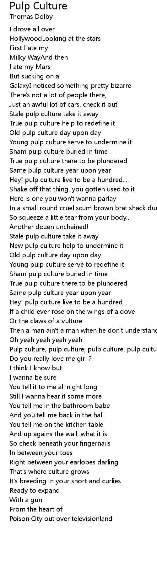 Pulp culture, pulp culture, pulp culture, pulp culture |