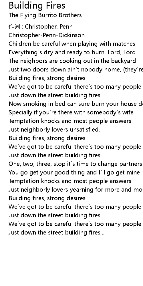 | Everything`s dry and ready to burn, Lord, Lord | |