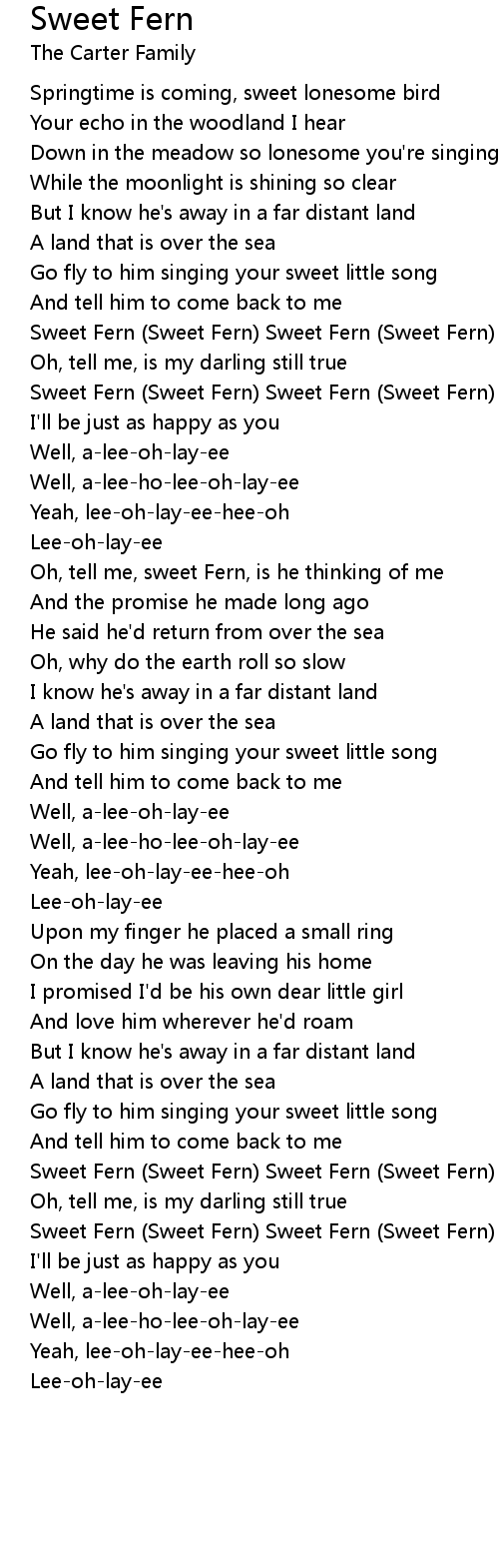 Oh, tell me, sweet Fern, is he thinking of me |