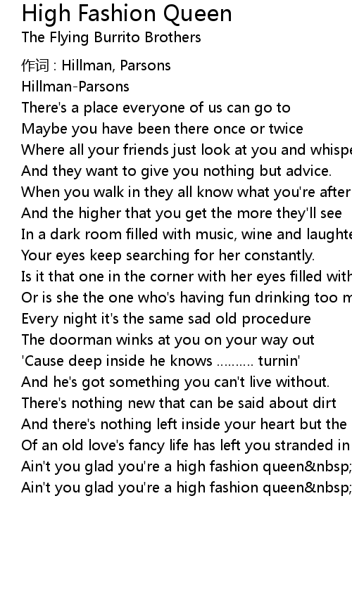 | Ain' t you glad you' re a high fashion queen nbsp? | |