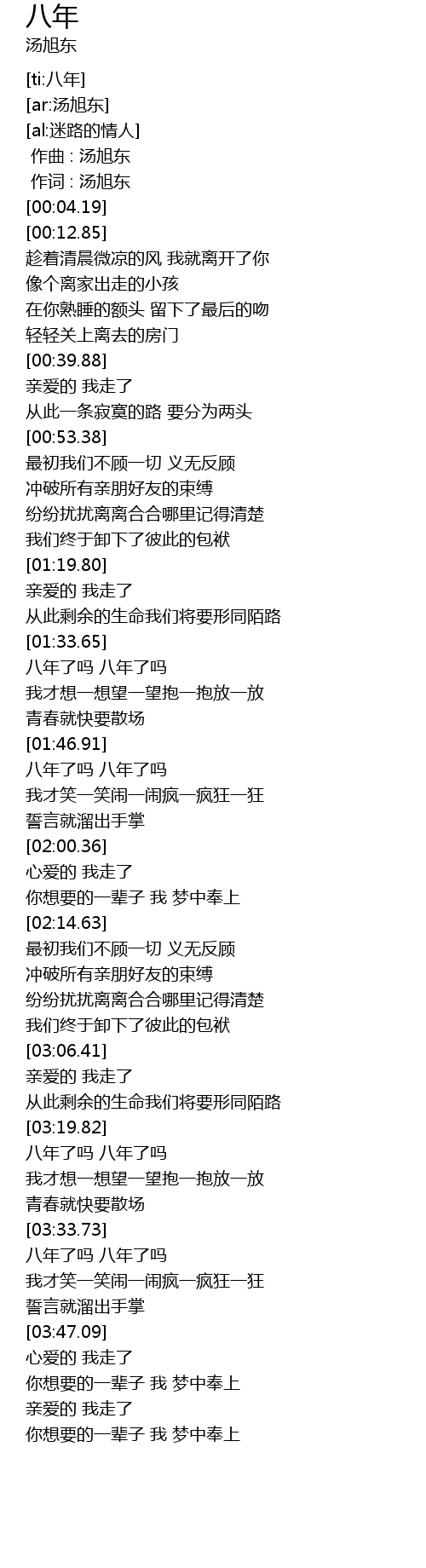 | [03:34.08] | bā nián le ma bā nián le ma |