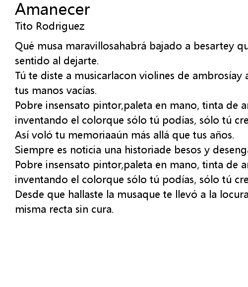 | Tú te diste a musicarlacon violines de ambrosí ay a la hora de guardarlaviste tus manos vací as. | |