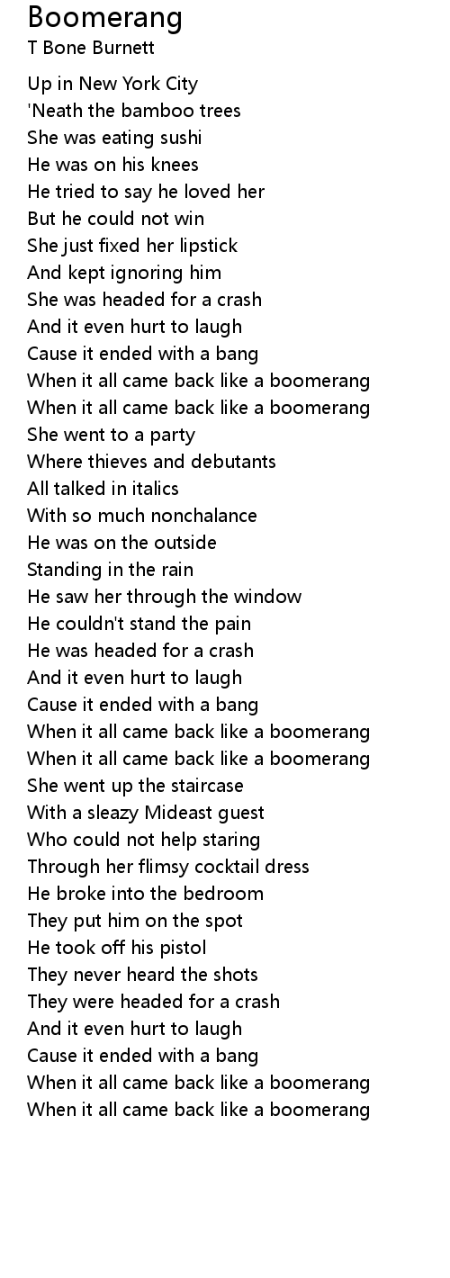 When it all came back like a boomerang |
